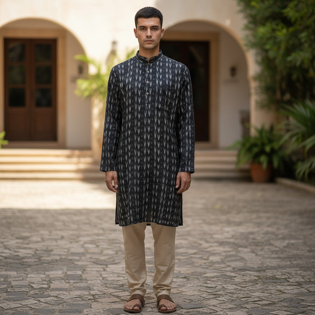 Each kurta is woven in pure handloom fabric — breathable, elegant, and timeless.