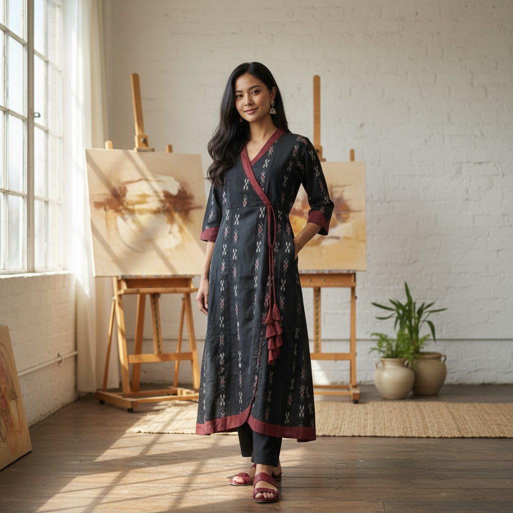 Handloom Anarkali Kurta & Pant, Black | We Handloom