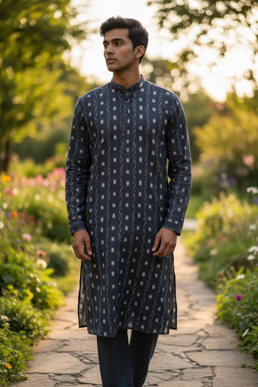 Each kurta is woven in pure handloom fabric — breathable, elegant, and timeless.